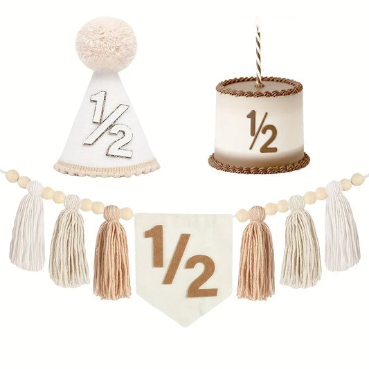 Half-Year Birthday Party Decoration Set, Available in Four Colors, Bohemian-Style Tassel Garland for First Birthday Celebrations