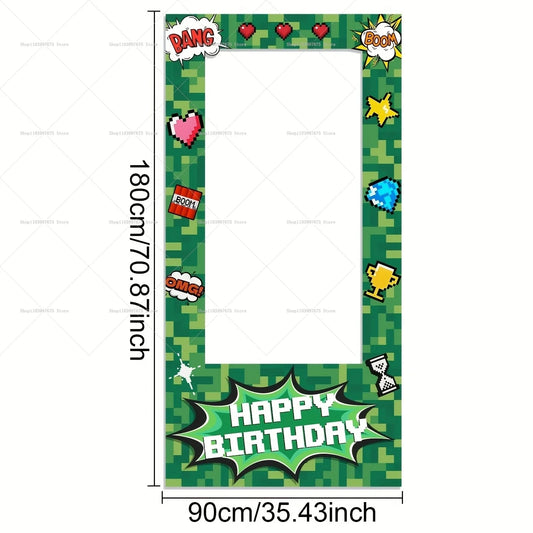 Happy Birthday Theme Party Decorations Photo Booth Frame Props Pixel Kids Game Decor Pixeled Background Banner Party Supplies