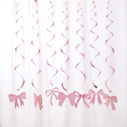 Happy Birthday Garland Pink Bow Banner Backdrops Decoration Kids Baby Shower Girl Party Supplies Bowknot Flag Hanging Decoration