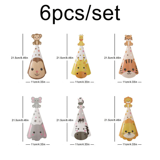 Forest animal jungle party decoration birthday hat Tiger elephant lion giraffe monkey zebra photo props headdress 1 set of 6 pie